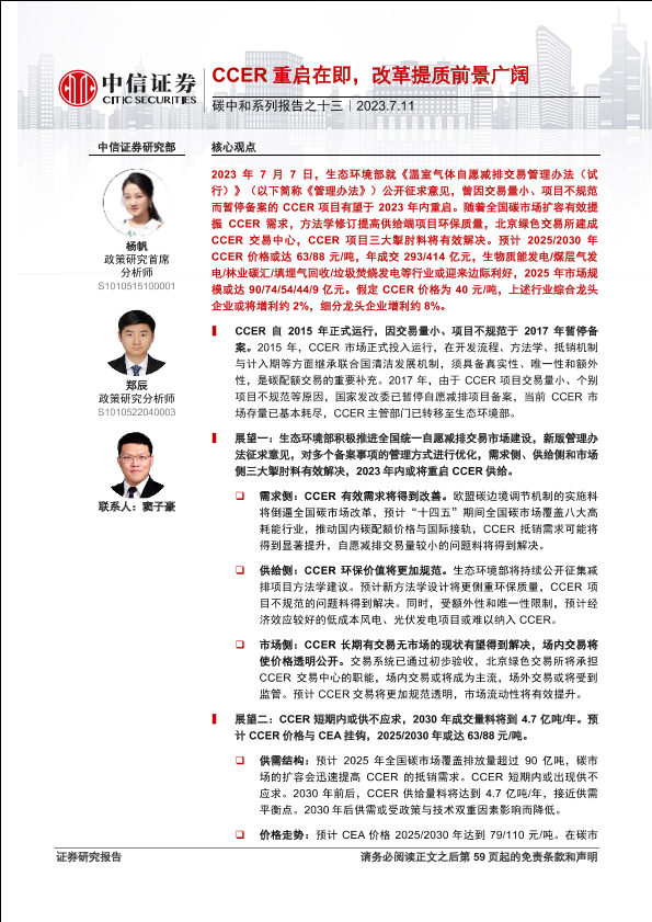 【中信证券】【20230711】碳中和系列报告之十三:CCER重启在即,改革提质前景广阔-67页