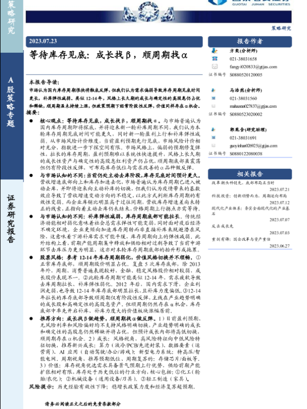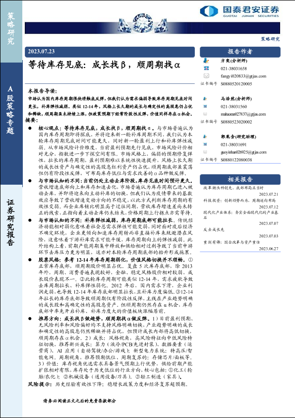 【国泰君安证券】【20230723】等待库存见底:成长找β,顺周期找α-21页