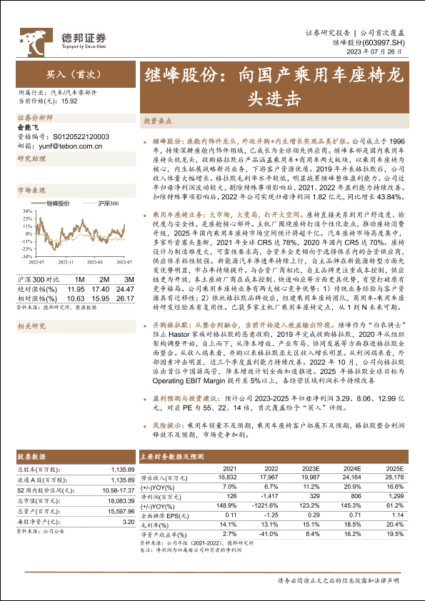 【德邦证券】【20230726】继峰股份(603997):向国产乘用车座椅龙头进击-23页