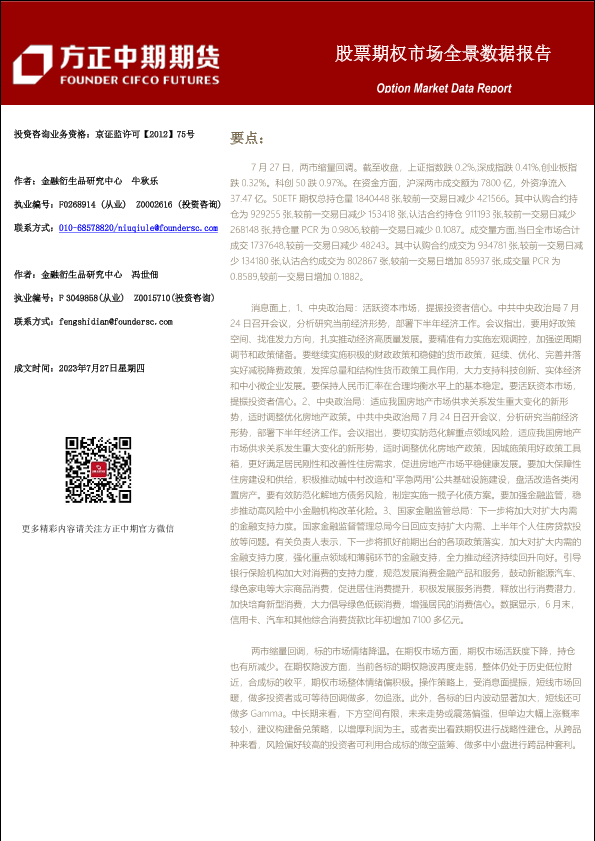 【方正中期期货】【20230727】股票期权市场全景数据报告-44页