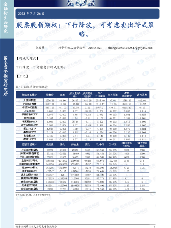 【国泰君安期货】【20230726】股票股指期权:下行降波,可考虑卖出跨式策略-16页