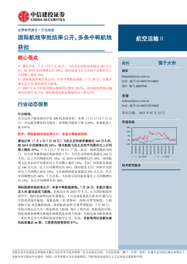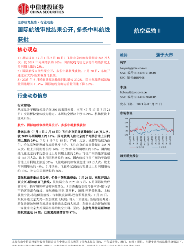 【中信建投证券】【20230723】航空运输行业动态:国际航线审批结果公开,多条中韩航线获批-25页