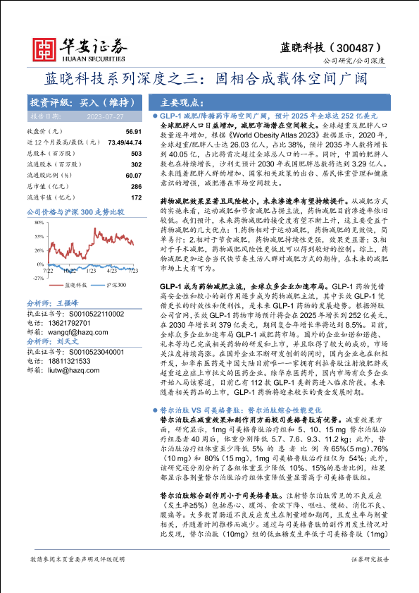 GLP-1药物 减肥市场 固相合成载体 生物医药 蓝晓科技