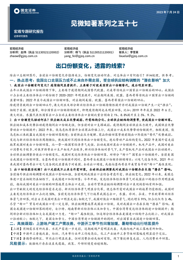 【国金证券】【20230724】见微知著系列之五十七:出口份额变化,透露的线索?-20页