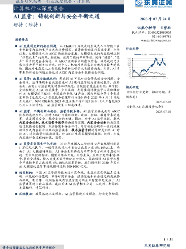 【东吴证券】【20230724】计算机行业深度报告:AI监管,铸就创新与安全平衡之道-31页