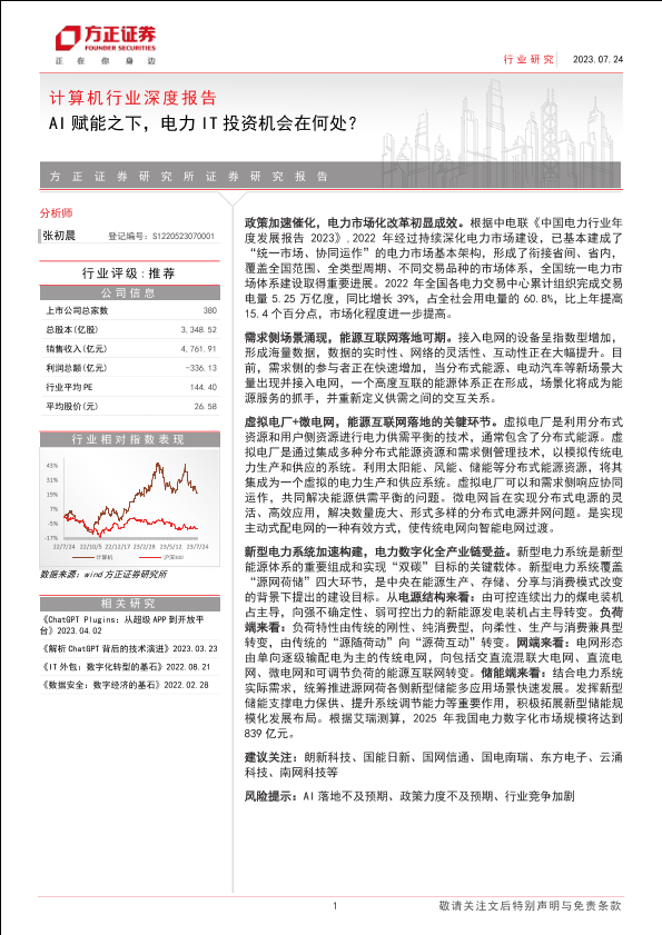 【方正证券】【20230724】计算机行业深度报告:AI赋能下,电力IT投资机会在何处?-24页