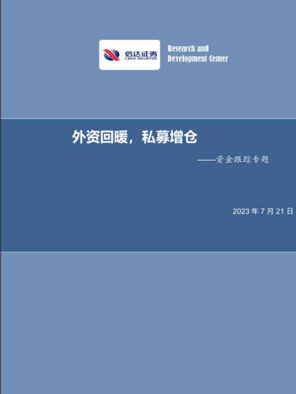 【信达证券】【20230721】资金跟踪专题:外资回暖,私募增仓-17页