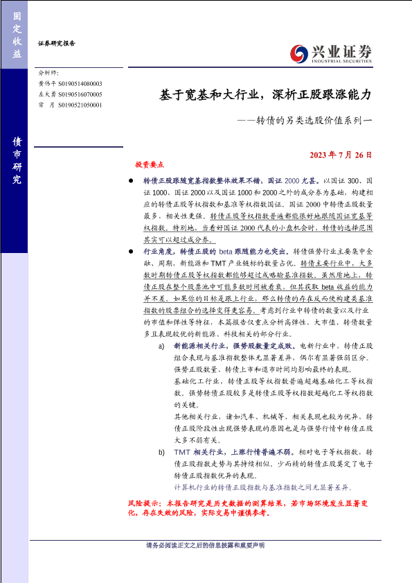 【兴业证券】【20230726】基于宽基和大行业,深析正股跟涨能力——转债的另类选股价值系列一-24页