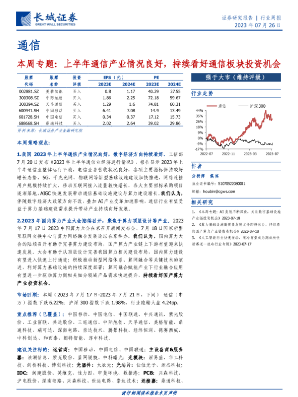 【长城证券】【20230726】通信本周专题:上半年通信产业情况良好,持续看好通信板块投资机会-21页