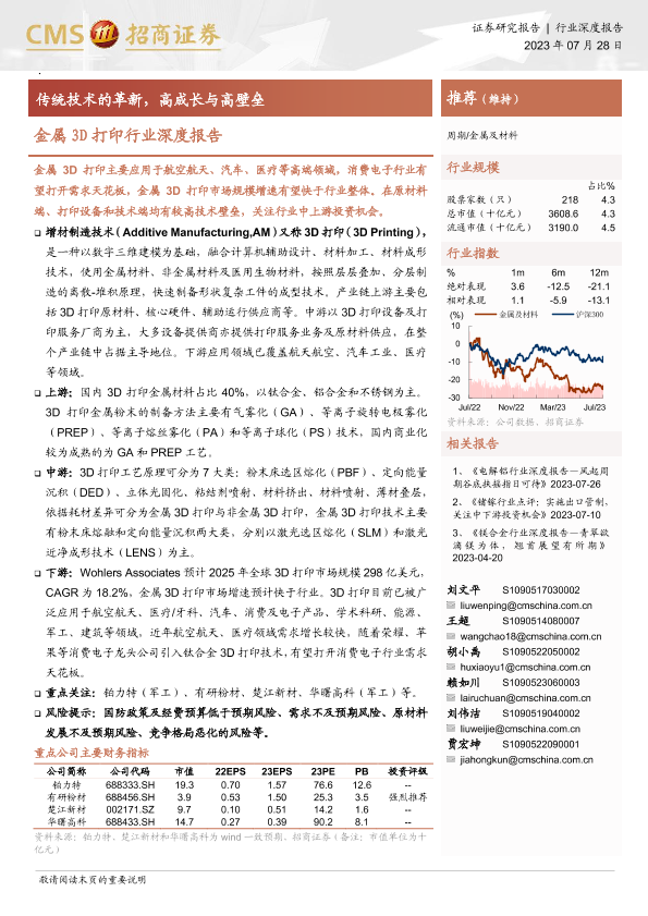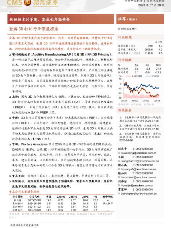 【海通证券】【20230728】金属3D打印行业深度报告:传统技术的革新,高成长与高壁垒-35页