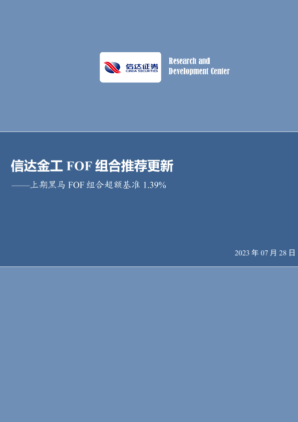 【信达证券】【20230728】信达金工 FOF组合推荐更新——上期黑马 FOF组合超额基准1.39%-24页