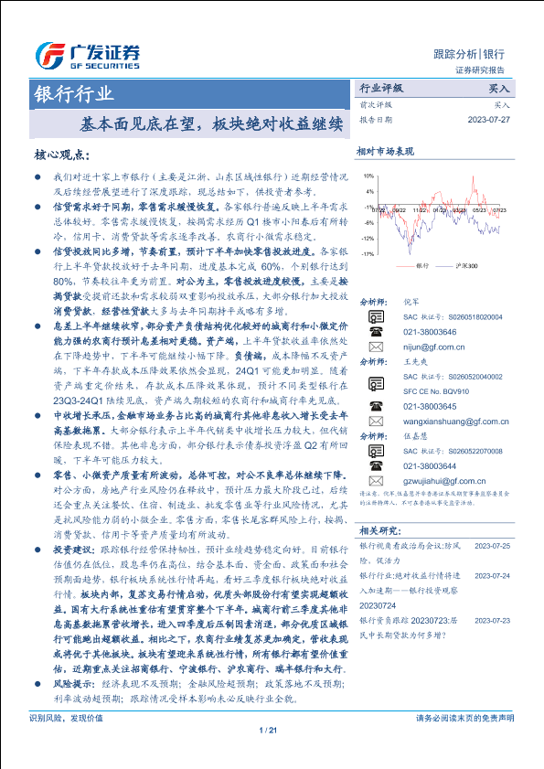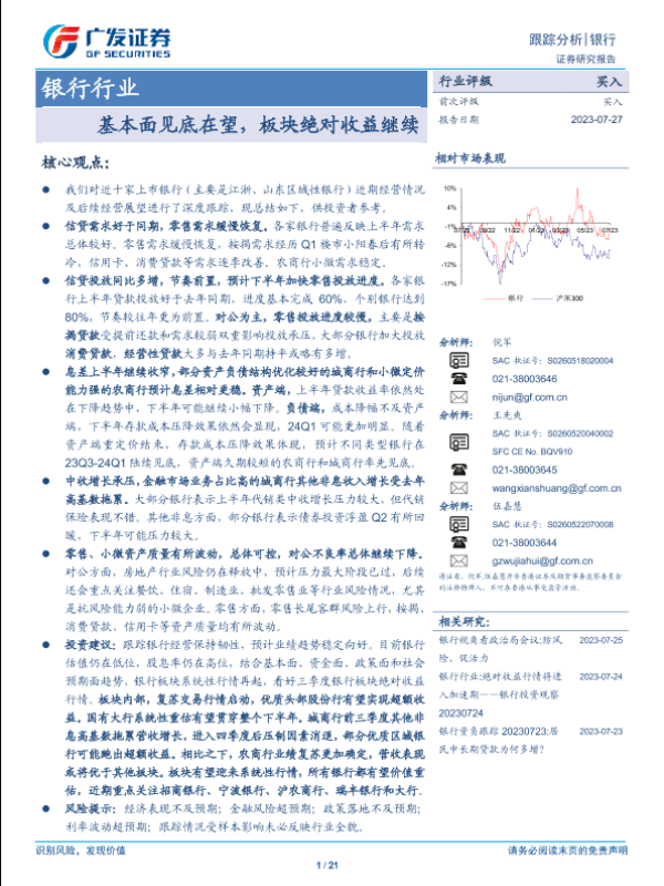 【广发证券】【20230727】银行行业:基本面见底在望,板块绝对收益继续-21页