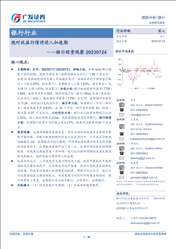 【广发证券】【20230724】银行投资观察:绝对收益行情将进入加速期-26页