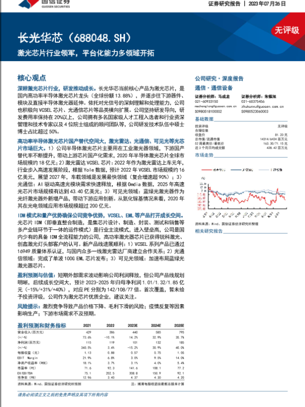 【国信证券】【20230726】长光华芯(688048)激光芯片行业领军,平台化能力多领域开拓-55页