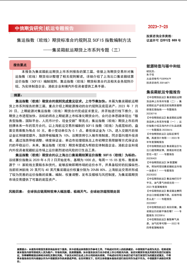 【中信期货】【20230725】集装箱航运期货上市系列专题(三):集运指数(欧线)期货标准合约规则及SCFIS编制方法-17页