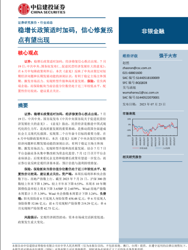 【中信建投证券】【20230723】非银金融行业:稳增长政策适时加码,信心修复拐点有望出现-23页