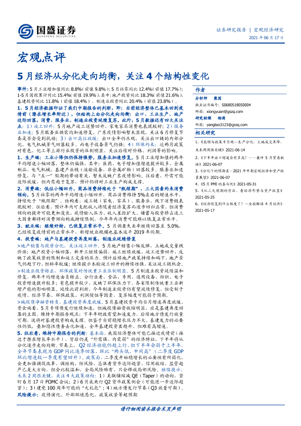 【国盛证券】【20210617】宏观点评:5月经济从分化走向均衡,关注4个结构性变化-10页