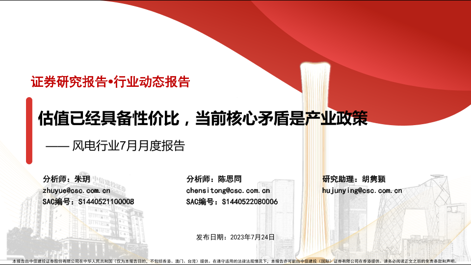 【中信建投证券】【20230724】风电行业7月月度报告:估值已具备性价比,当前核心矛盾是产业政策-38页