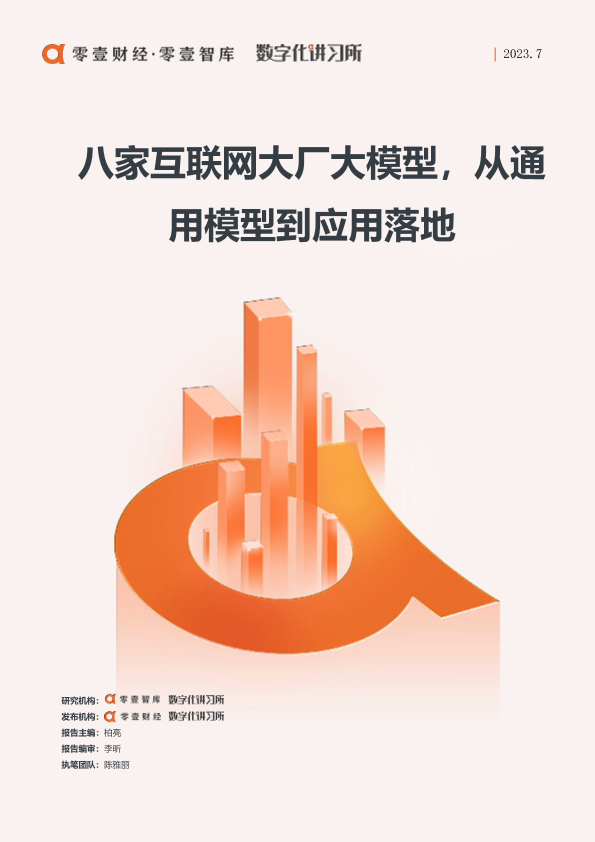 【零壹智库】【20230701】八家互联网大厂大模型,从通用模型到应用落地-16页