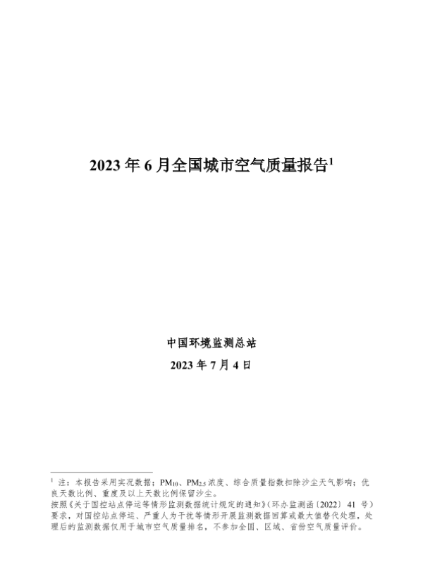 【中国环境监测总站】【20230704】2023年6月全国城市空气质量报告-32页