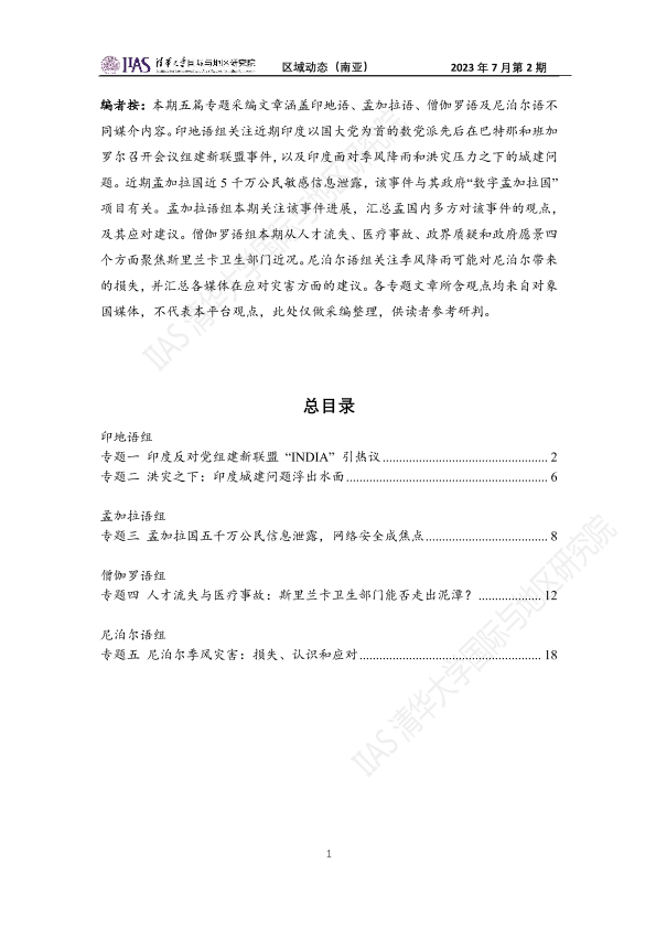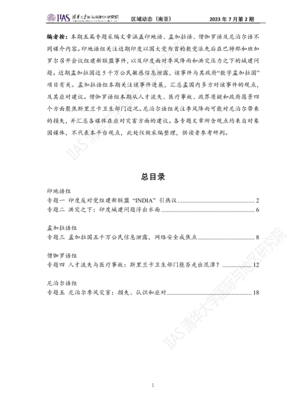 【北京大学印度语言文学专业】【202307】2023年7月第二期《区域动态》南亚地区-20页