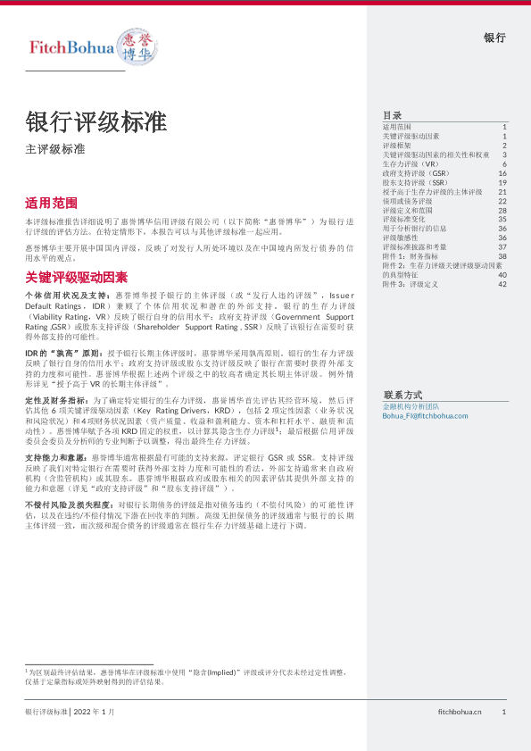 【惠誉博华信用评级有限公司】【20220101】惠誉博华银行评级标准-44页