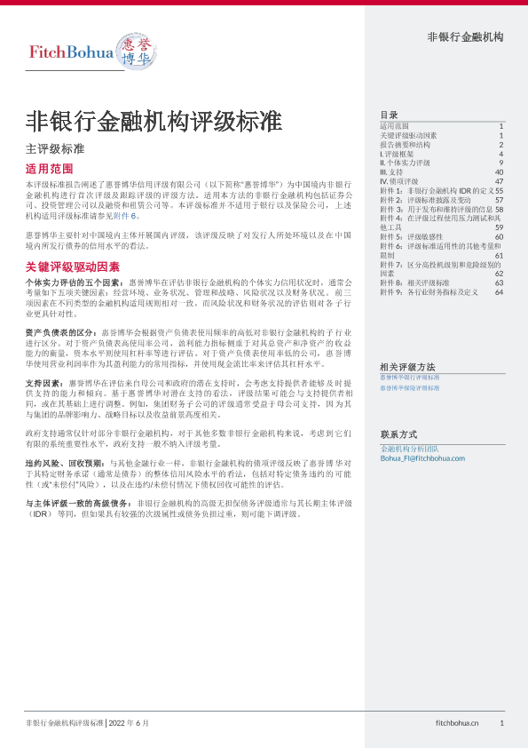 【惠誉博华信用评级有限公司】【202206】惠誉博华非银行金融机构评级标准-69页
