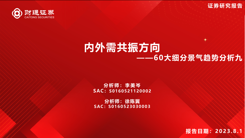 【财通证券】【20230801】60大细分景气趋势分析九:内外需共振方向-89页