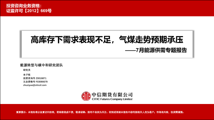 【中信期货】【20230731】7月能源供需专题报告:高库存下需求表现不足,气煤走势预期承压-81页