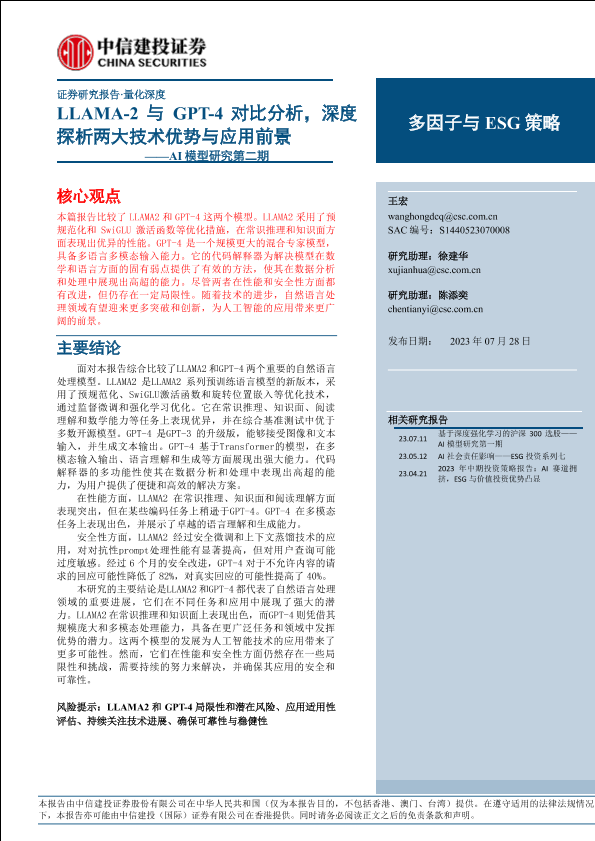 【中信建投证券】【20230728】AI模型研究第二期:LLAMA_2与GPT_4对比分析,深度探析两大技术优势与应用前景-32页