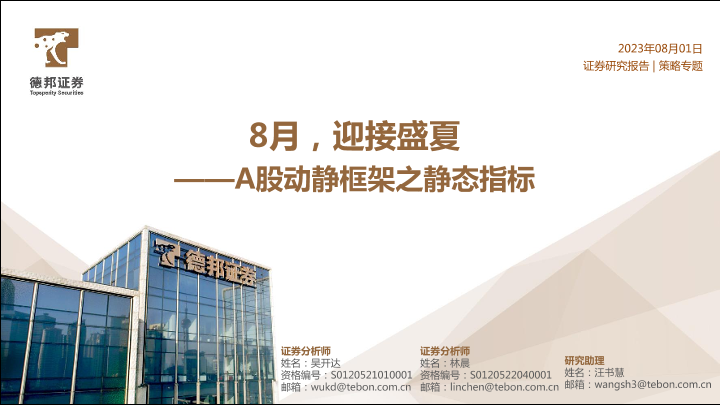 【德邦证券】【20230801】8月,迎接盛夏——A股动静框架之静态指标-20页