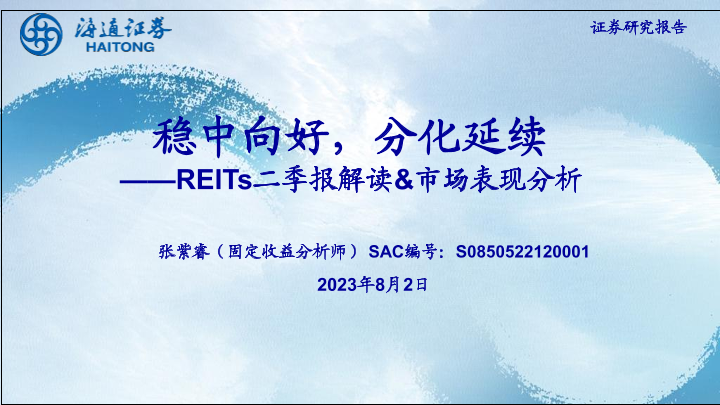 【海通证券】【20230802】REITs二季报解读&市场表现分析:稳中向好,分化延续-21页