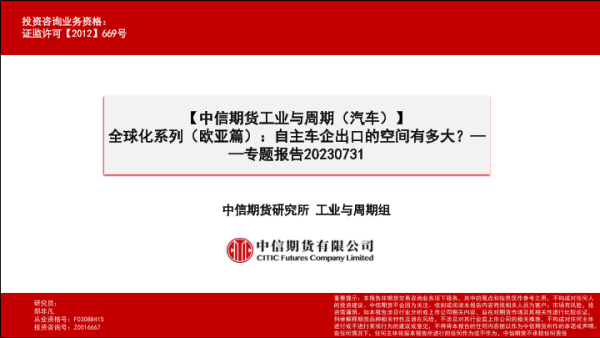 【中信期货】【20230731】全球化系列(欧亚篇),自主车企出口的空间有多大?-30页