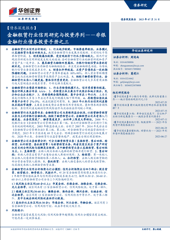 【华创证券】【20230731】【债券深度报告】非银金融行业债券投资手册之三:金融租赁行业信用研究与投资序列-33页