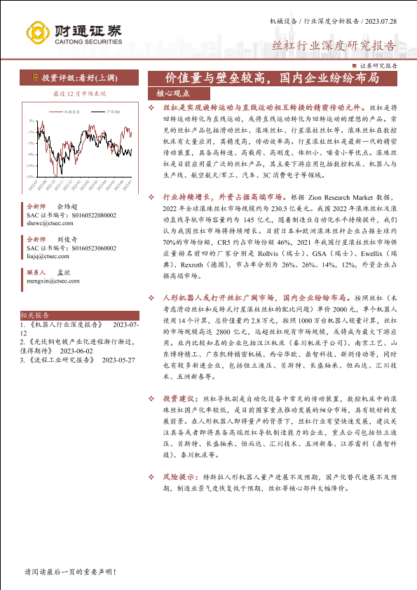 【财通证券】【20230728】丝杠行业深度研究报告:价值量与壁垒较高,国内企业纷纷布局-27页