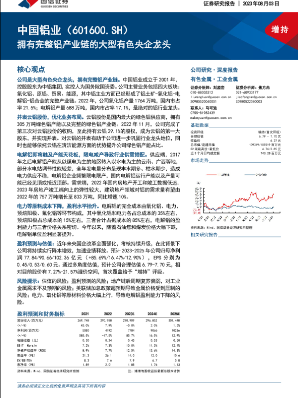 【国信证券】【20230803】中国铝业(601600)拥有完整铝产业链的大型有色央企龙头-33页