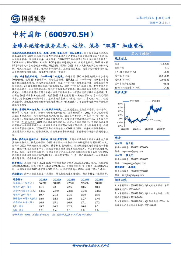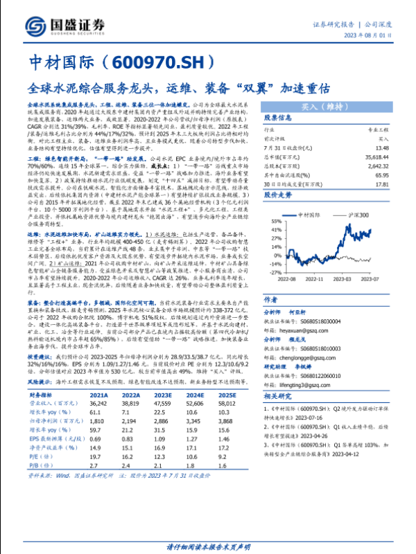 【国盛证券】【20230801】中材国际(600970)全球水泥综合服务龙头,运维、装备“双翼”加速重估-39页