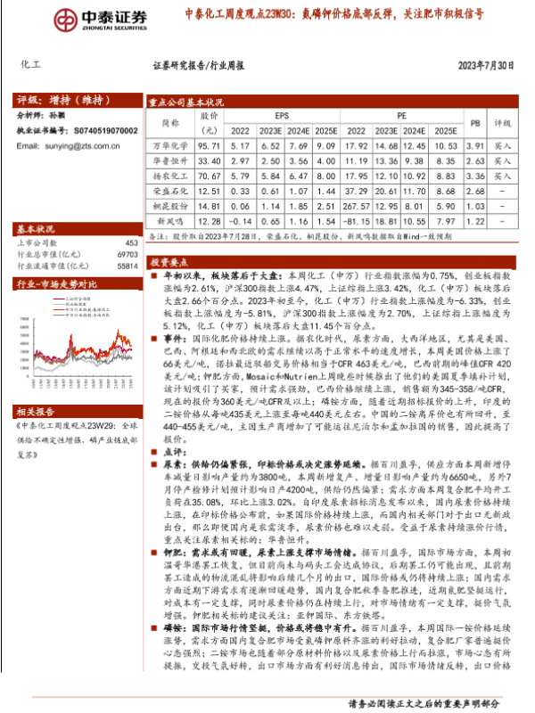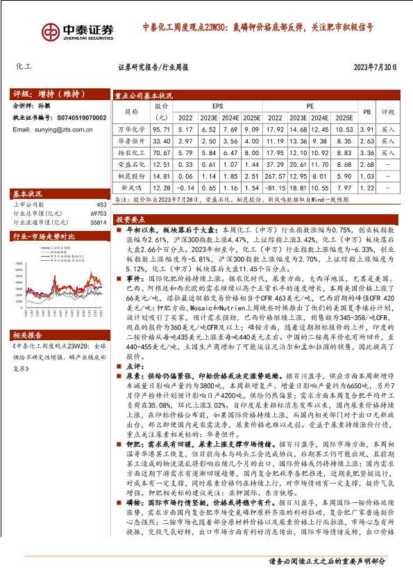 【中泰证券】【20230730】中泰化工周度观点23W30:氮磷钾价格底部反弹,关注肥市积极信号-29页
