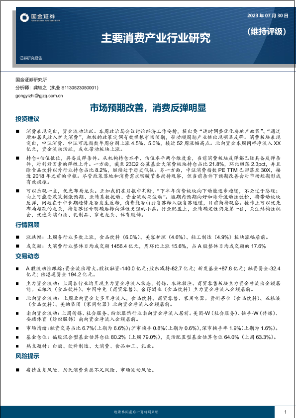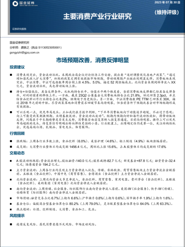 【国金证券】【20230730】主要消费产业行业研究:市场预期改善,消费反弹明显-20页