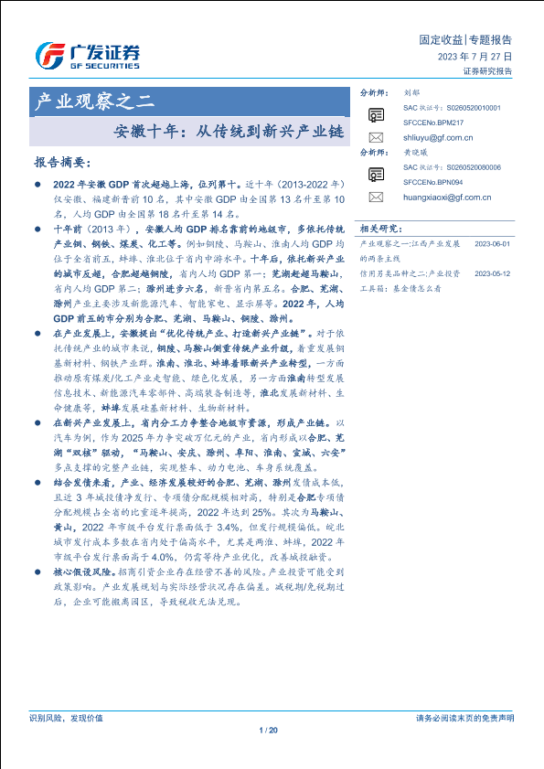 【广发证券】【20230727】产业观察之二:安徽十年:从传统到新兴产业链-20页