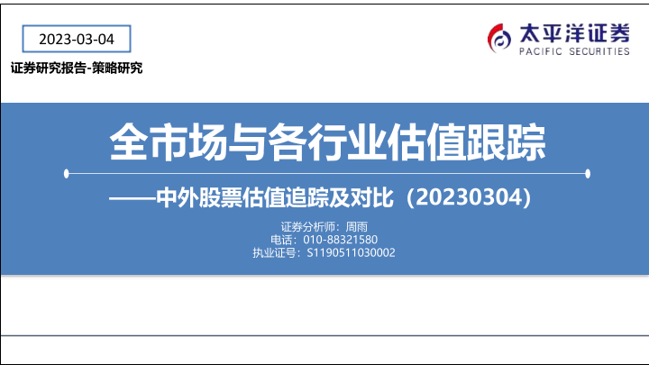 【太平洋证券】【20230304】全市场与各行业估值跟踪:中外股票估值追踪及对比-27页
