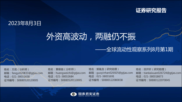 【国泰君安证券】【20230803】全球流动性观察系列8月第1期:外资高波动,两融仍不振-57页