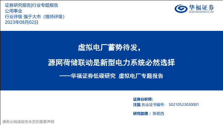 【华福证券】【20230702】公用事业虚拟电厂专题报告:虚拟电厂蓄势待发,源网荷储联动是新型电力系统必然选择-40页