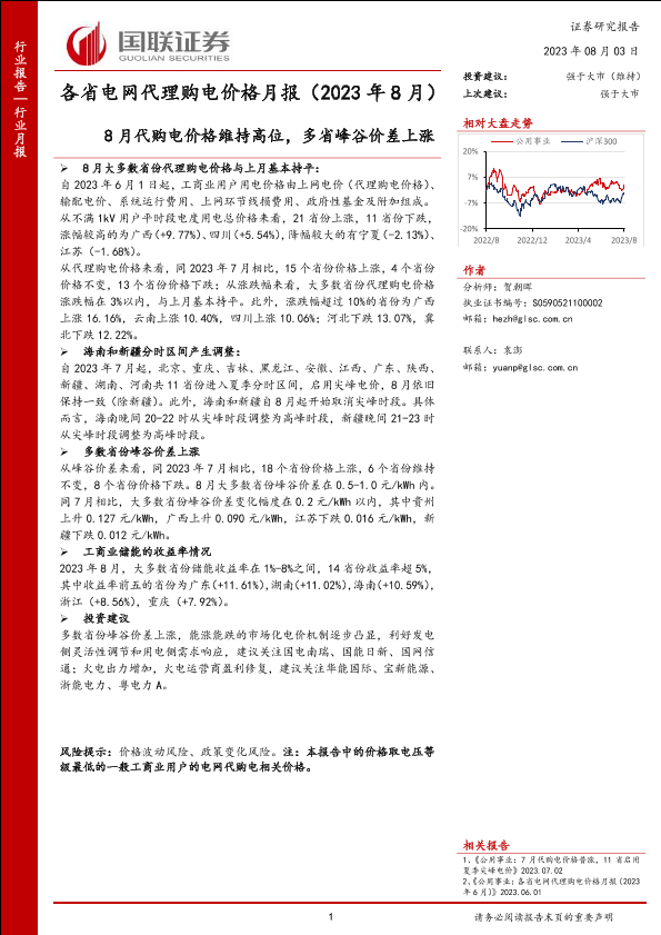 【国联证券】【20230803】公用事业行业各省电网代理购电价格月报(2023年8月)-41页