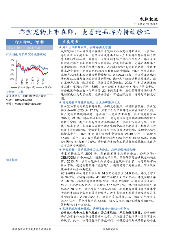 【华安证券】【20230731】农林牧渔行业:乖宝宠物上市在即,麦富迪品牌力持续验证-31页