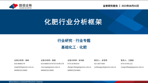 【国信证券】【20230803】化肥行业分析框架-64页