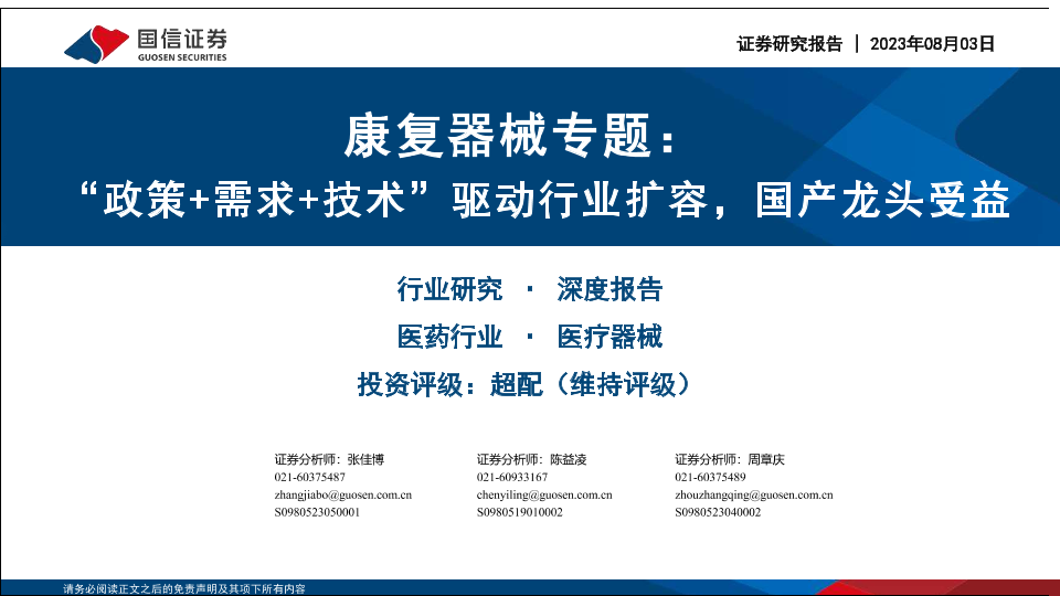 【国信证券】【20230803】医疗器械行业康复器械专题:“政策+需求+技术”驱动行业扩容,国产龙头受益-26页
