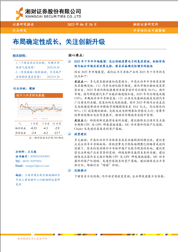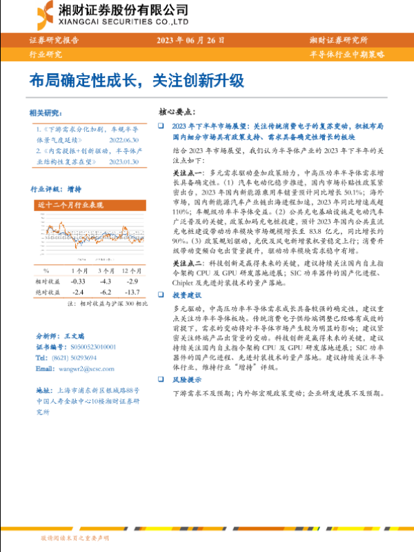 【湘财证券】【20230626】半导体行业中期策略:布局确定性成长,关注创新升级-32页