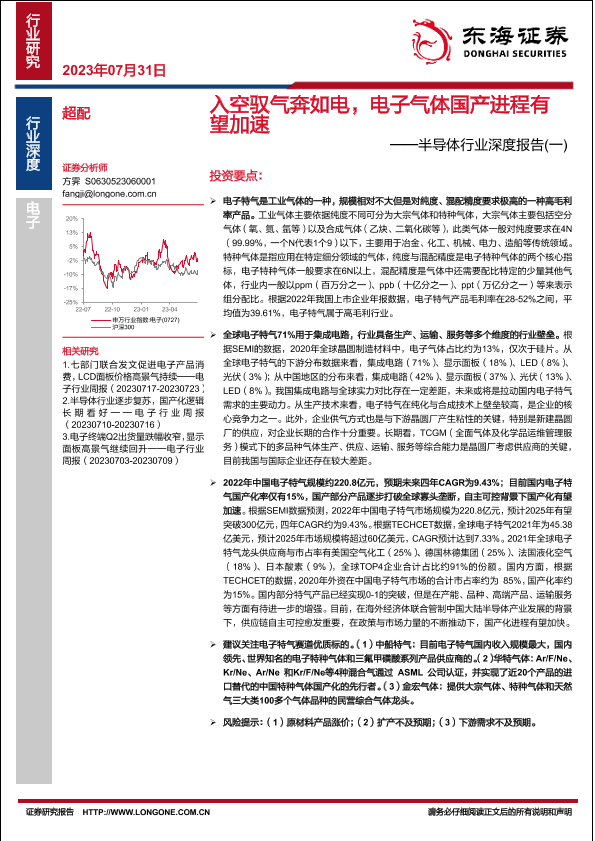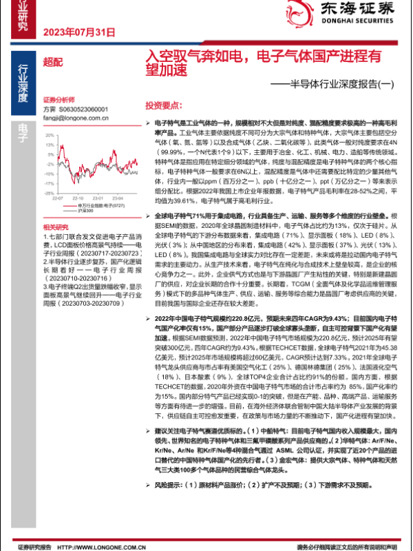【东海证券】【20230731】入空驭气奔如电,电子气体国产进程有望加速——半导体行业深度报告(一)-32页