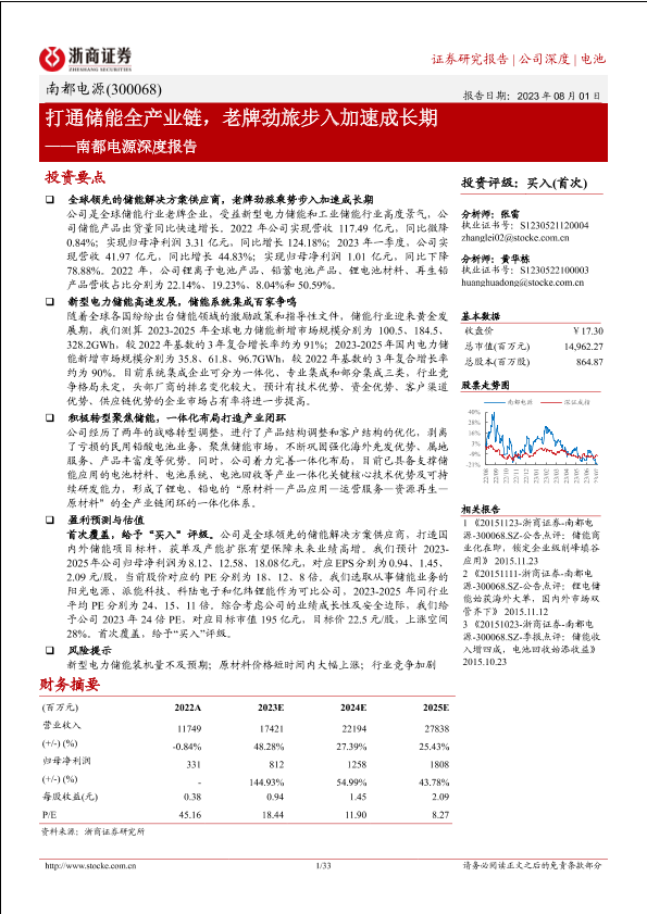 【浙商证券】【20230801】南都电源(300068)南都电源深度报告:打通储能全产业链,老牌劲旅步入加速成长期-33页